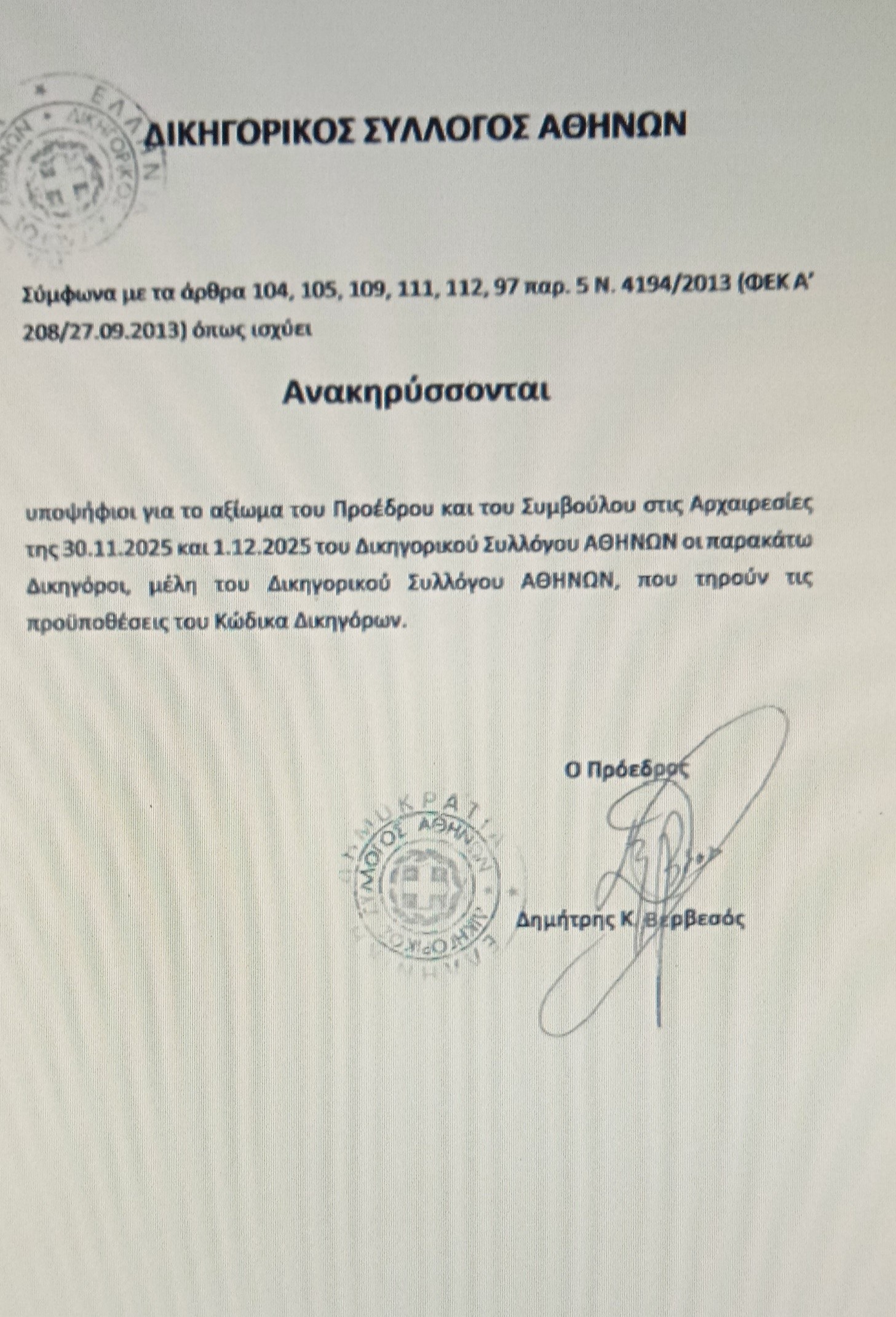 Οι δικηγόροι ψηφίζουμε αύριο για την εκλογή νέων Διοικητικών Συμβουλίων. Ενόψει αυτών ο μεγαλύτερος επιστημονικός σύλλογος της χώρας εξέδωσε ανακοίνωση με τα ονόματα των υποψηφίων Προέδρων και Συμβούλων.