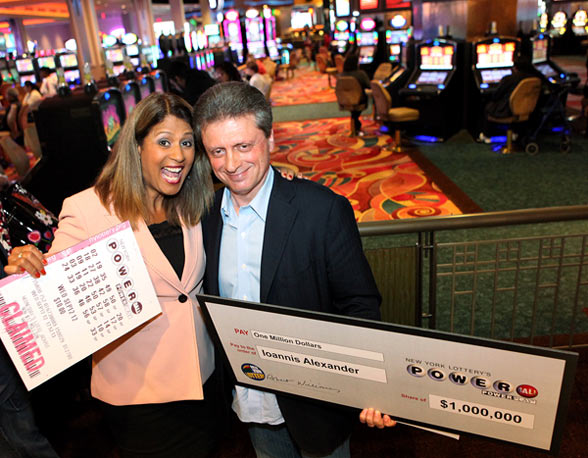 Εικόνα 6. Περιχαρής ο Ιωάννης Αλεξάντερ, κατά την παραλαβή της επιταγής για το κερδοφόρο λαχείο του στο Ατλάντικ Σίτυ. Η πηγή της χρηματοδότησης της εγκληματικής οργάνωσης όμως ήταν τα ναρκωτικά χάπια.