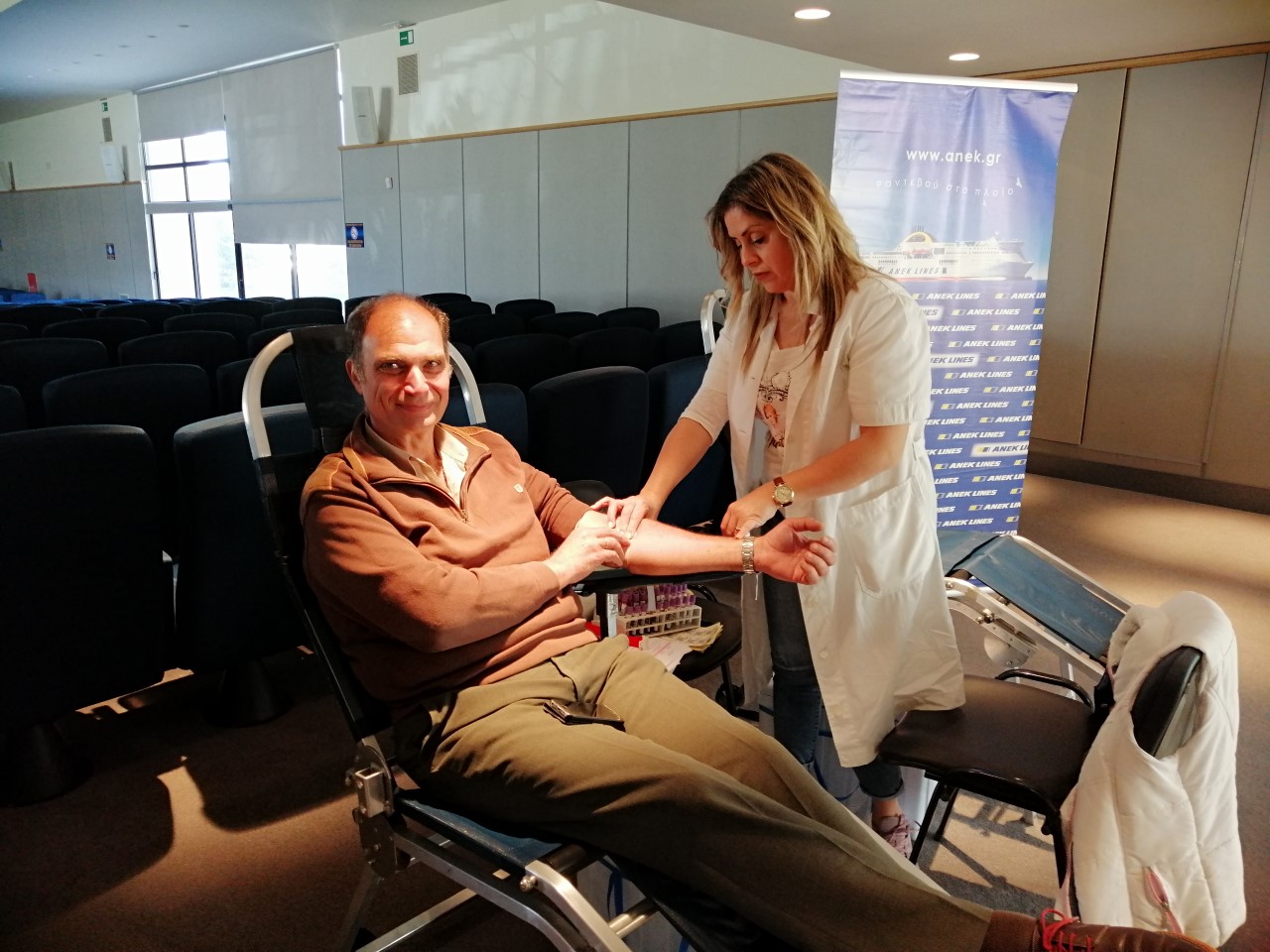 Ολοκληρώθηκε χθες η εθελοντική αιμοδοσία που διοργάνωσε ο "Σύλλογος Εθελοντών Αιμοδοτών Νομού Χανίων ο Άγιος Ιωάννης", με τη συνεργασία του Γενικού Νοσοκομείου Χανίων, στα κεντρικά γραφεία της ΑΝΕΚ LINES. Αρωγός βεβαίως για άλλη μια φορά η ομώνυμη εταιρεία με την πάντοτε πρόσχαρη και δραστήρια κυρία Άννα Νικολακάκη να πρωτοστατεί.