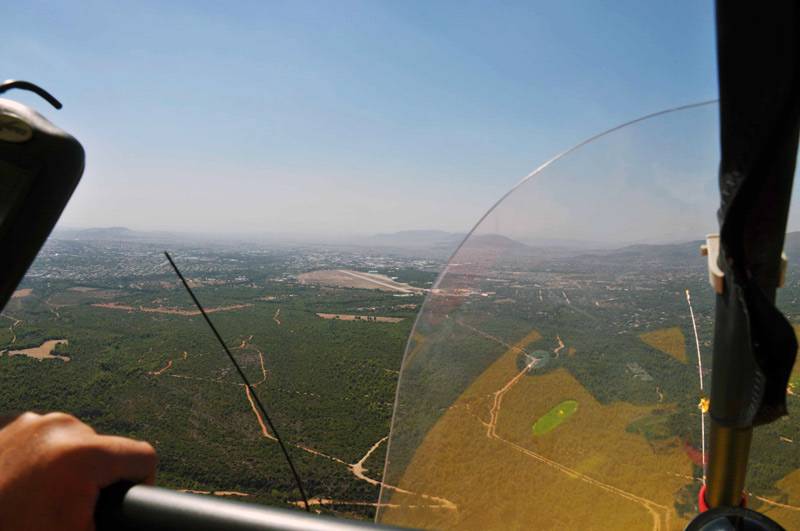 Σήμερα όλα πήγαν τέλεια κατά την διάρκεια μιας σύντομης πτήσης 40 λεπτών από το πεδίο υπερελαφρών της Θήβας. Για κάποιο λόγο μας ζήτησαν να περάσουμε την Τανάγρα, 6 μίλια Νότια, ενώ συνήθως πάμε από Χαλκίδα – Ωρωπό. Τελικά μας το επέτρεψαν και ακολουθήσαμε το αρχικό μας σχέδιο. Μικρή κυκλοφορία στρατιωτικών αεροσκαφών, βαρομετρική 1017 και καμία κυκλοφορία από πολιτικό αεροσκάφος, όσο ήμασταν στον αέρα, με εξαίρεση ένα ελικόπτερο που βρήκαμε πάνω από τη λίμνη του Μαραθώνα.