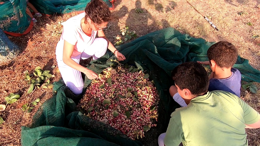 Από όλη εκείνη τη διαδικασία μου έμεινε η απίστευτη μυρωδιά του φρέσκου καρπού, την ώρα που πέφτει απ' το δένδρο, και η σύμπνοια των μελών της οικογένειας που κτυπούν τα κλαδιά της φυστικιάς και συγκεντρώνουν τον καρπό της σε ειδικά δίχτυα που απλώνουν στις ρίζες των δένδρων.