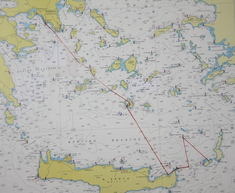 Ένα ταξίδι 220 ν.μιλίων από το Καλαμάκι μέχρι την Κάσο... ξεχείλωσε στα 280 περίπου ν. μίλια! Η πολυπόθητη μέρα πλησίαζε. Το στομάχι μου είχε ήδη αρχίσει να δένεται κόμπος, στη σκέψη και μόνο ότι θα ανοιχτώ μόνος μου στο πέλαγος, για πρώτη φορά, με ένα τετράμετρο φουσκωτό της "Olympic Hellas" που το έσπρωχνε μια σαραντάρα "Evinrude". Δεν χρειάζεται βεβαίως να χαρακτηρίσω εκείνο το φουσκωτό "συμβατικό", για τον απλούστατο λόγο ότι το 1982 δεν υπήρχαν πολυεστερικές γάστρες! Εκείνο πάντως το σφίξιμο στο στομάχι ήταν παρόμοιο με το σφίξιμο των μαθητικών χρόνων στις εξετάσεις! Ταχυκαρδία, λίγο πριν δοθούν τα θέματα, και τάση για εμετό! Λίγο μετά, όλα έμπαιναν στη θέση τους... Το ίδιο και στη θάλασσα, εν όψει ενός μεγάλου ταξιδιού με προορισμό τον ορίζοντα. Όλα συμβαίνουν μέχρι να λυθούν οι κάβοι. Μόλις λυθούν, βγεις από τη μαρίνα στο πέλαγος και φας το πρώτο μπουγέλο, όλα ξεχνιούνται!