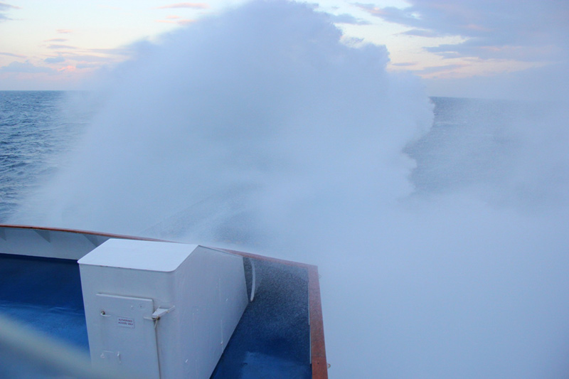 Ξεκινήσαμε στις 11/1/2012 και ώρα 13:00 από Πειραιά για Κύθηρα - Κίσσαμο. Σχεδόν σε όλη τη διαδρομή είχαμε πρύμα τον καιρό, ενα 7αράκι. Μετά τα Κύθηρα ο καιρός δυνάμωνε όλο και περισσότερο. Με το που φτάσαμε στις 01:00 της 12/1/2012 έξω από το λιμάνι της Κισσάμου, κατά την ώρα της μανούβρας, το ανεμόμετρο έγραφε 35-36 κόμβους ενώ το κύμα στο πλευρό, την ώρα της αριστερής στροφής έξω από το λιμάνι, ήταν πραγματικά τεράστιο λόγω του ότι ήταν Γραιγοτραμουντάνα και τα κύματα έφταναν βουνά από δεκάδες ναυτικά μίλια μακριά. Να φανταστείτε ξενέριζαν τα δύο thrusters!