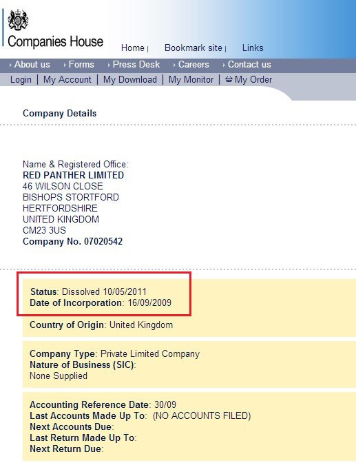 Η βεβαίωση ότι η Red Panther Limited κατέβασε ρολλά το 2011Για να γίνει αυτό θα έπρεπε οι δικαστές να αναβάλλουν την ακροαματική διαδικασία και να ζητήσουν περαιτέρω διερεύνηση της υπόθεσης. Ήξεραν πώς να το κάνουν αυτό. Δεν ήταν ανάγκη να ρωτήσουν τους καλοθελητές απατεώνες που κατέθεσαν υπέρ του ομολόγου τους. Αρκούσε να στείλουν υπηρεσιακώς μερικές επιστολές στο Υπουργείο Οικονομικών των Η.Π.Α. και στην Αγγλική εταιρεία "Red Panther Limited", η οποία, ειρήσθω εν παρόδω, είχε σταματήσει να δραστηριοποιείται (κοινώς είχε κατεβάσει ρολλά) από το 2011, ήτοι δύο χρόνια πριν από την ημερομηνία εκδίκασης της εν λόγω υπόθεσης από το Πλημμελειοδικείο των Αθηνών και όσων κατέθεσαν ο Σώρρας και οι ψευδομάρτυρές του!!!" http://www.ribandsea.com/waves/2734-peri-pagkosmion-katapistevmaton-kai-allon-bourdologion