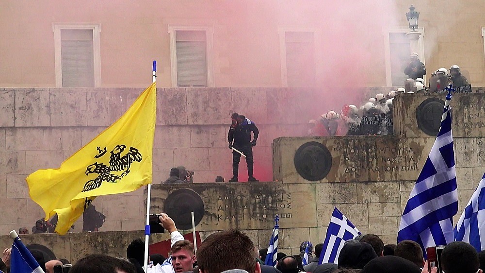 Μεταξύ αυτών ο πρώην υπηρεσιακός Υπουργός Εθνικής Άμυνας Φράγκος Φραγκούλης, στον οποίον όμως οι διοργανωτές δεν επέτρεψαν να ανέβει στην εξέδρα για να εκφωνήσει τον χαιρετισμό του προς το πλήθος, ο πρόεδρος της Ελληνοαμερικανικής Ένωσης, πρώην πολιτειακός γερουσιαστής και πρώην πρόεδρος της Βουλής των Δημοκρατικών του Νιου Χαμσάϊρ Κρις Σπύρου, ο Γιώργος Καραμπελιάς του "Άρδην", ο Όθων Ιακωβίδης και, βεβαίως, η γνωστή πια "επαναστάτρια" και "αγωνίστρια" κυρία Γεωργία Μπιτάκου η οποία, αφού ξεσήκωσε τα πλήθη, έτρεξε στη συνέχεια στις σκάλες του Αγνώστου Στρατιώτη για να κάνει αυτά που περιέγραψα νωρίτερα και θα δείτε στο βίντεο...